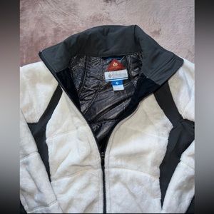Columbia Omni Heat Womens Fleece Jacket White Color Block Zip Pocket Mock Neck S