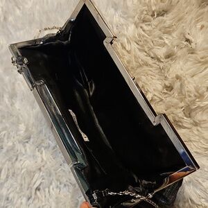 Keywords: La Regale, clutch, evening bag, party purse, silver clutch, chain strap, formal bag, wedding clutch, cocktail bag, metallic clutch, pleated clutch, shoulder bag, handbag