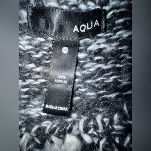 "AQUA XS Sweater" in the image is a black and white knit sweater with a geometric pattern,