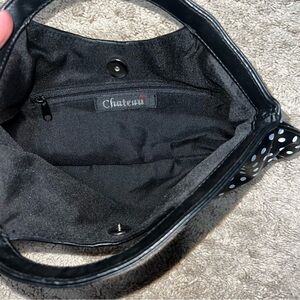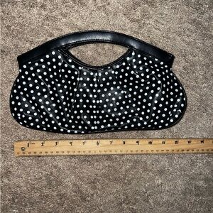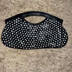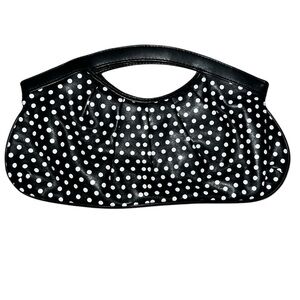 Chateau Polka Dot Clutch Bag Black White 12”x7”