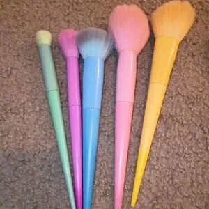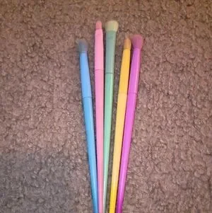They have been used but also they have been washed. Some are stained from blush and eyeshadow.