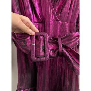 Retrofête Maureen wrap-effect metallic jersey mini dress XS Purple New