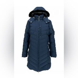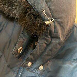Eddie Bauer Sun Valley Down Parka Coat Women's Navy Blue Puffer Hood size L. Removable hoodie excellent condition