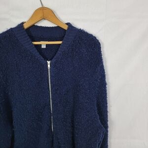 Women's NWOT Aerie Large Navy Blue Zip-Up Fuzzy Cardigan