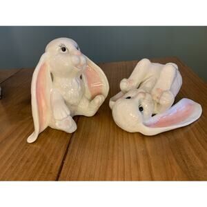 Ceramic Long Floppy Ear Bunnies Rabbits "Lopsy & Topsy" Vintage Holiday Figurine