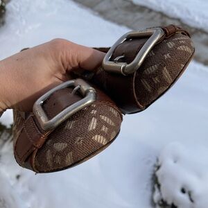 Fossil Carpet Print Tapestry Geometric Pattern Silver Buckle Brown Ballet Flats