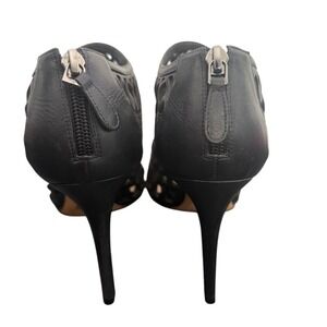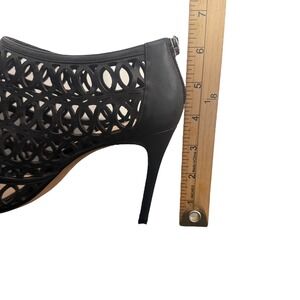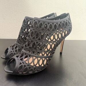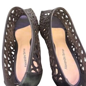 Alexandre Birman Black Leather Cut Out Heels Size 40.5 Laser Cut Peep Toe Shoes