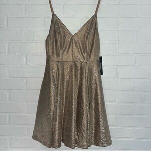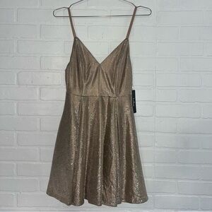 Lulus A-Line Mini Dress Keeps Getting Better Gold Skater Fit & Flare XS NWT