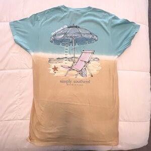 Charming Simply Southern tee with a beach chair design. Features aqua and beige hues.Size M