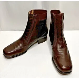 Ros Hammerson Womens Boots 7N Ankle Height Brown Leather Zip Butter Soft Booties