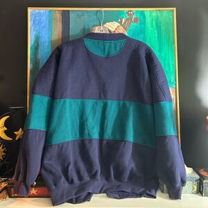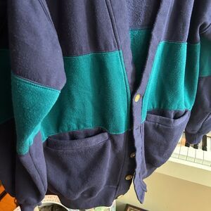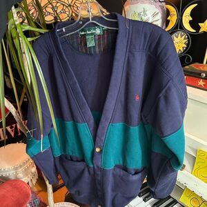 Vintage 80s 90s Classic Navy and Teal Cardigan by Knights Of Round Table Size M
