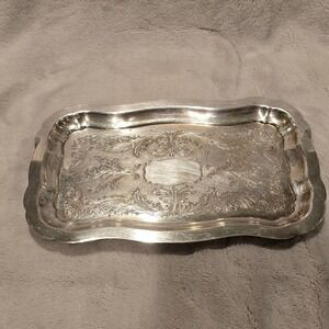 Keywords: Oneida Community, Tudor Plate, silver plated tray, serving tray, ornate serving tray, vintage tray, antique serving tray, floral engraving, scalloped edge tray, decorative tray, kitchenware, tableware, entertaining, platter, collectible