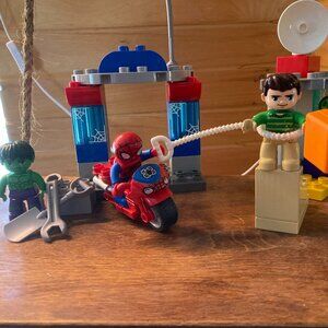 This preowned LEGO DUPLO 10876 Spider‑Man & Hulk Adventures set is a bright, sturdy Marvel favorite with plenty of life left. It includes both iconic figures — Spider‑Man and Hulk — along with the buildable pieces from the original set, all cleaned and ready for new adventures. There’s no box or manual, and the pieces show light play wear with some small scratches from normal use, but everything is solid, complete, and built to last the way DUPLO always is.