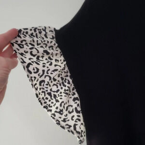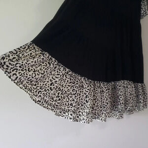 Beeson River Tier Dress XL Extra Large Black White Animal Print Leopard Ruffle Sleeves and Hem Comfy Soft Flowy Loose Fit Mobwife Boho Bohemian