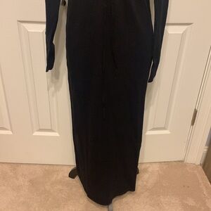 NWOT super soft knit maternity dress. Designed to go from bump to baby. Tie front with keyhole detail. Stretchy and NOT see through. Long sleeves. Side slit Size 10 Color Black Viscose/Polyamide 17” PTP & 49” L