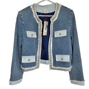 Alice + Olivia Landon Cropped Denim Jacket Large Y2k NYE Designer Party NWT
