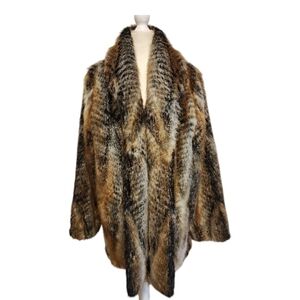 Chic and cozy faux fur stroller coat. . Eye-catching multitone design. Ideal for chilly days. In practically new condition. Size XL, fits a size 16