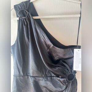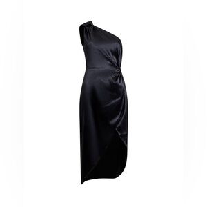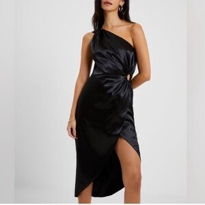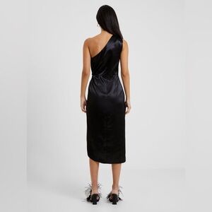 French Connection Adaline One-Shoulder Satin Midi Dress Black Size 8 NWT