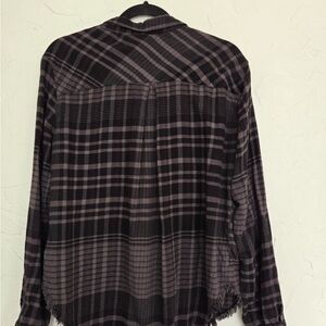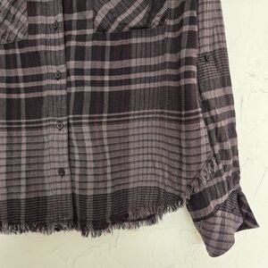 Cloth & Stone Black Gray Raw Hem Loose Button Down Top