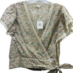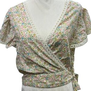Jennifer & Grace Teacup Liberty Floral Faux Wrap Tie Crop Top SZ M Spring NEW