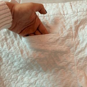 Crown Ivy Shorts 6 Off White Scalloped Hemline Pockets Ruffle Button Zip Cotton