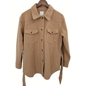 Joie Mid Length Jacket Shacket Sz M Tan Camel Lined Button Down Belted Pockets