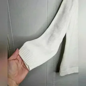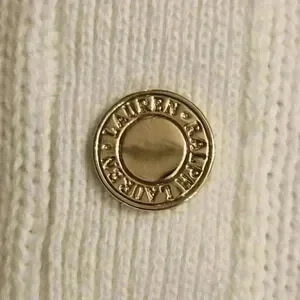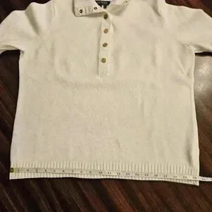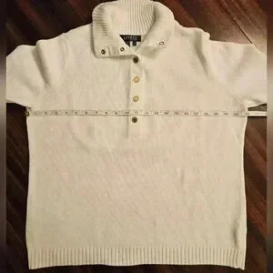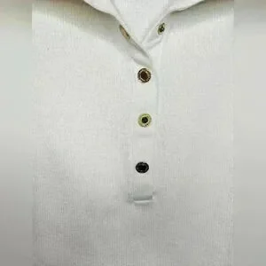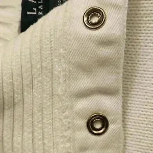 Ralph Lauren white chunky tight knit cotton knit, polo style, collared, goldtone snap button detail. Long sleeve, cropped. Excellent used condition.
