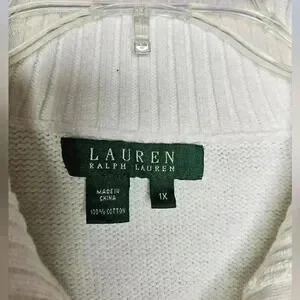 Lauren Ralph Lauren White Cotton Cropped Polo Knit Sweater Plus Womens 1X EUC