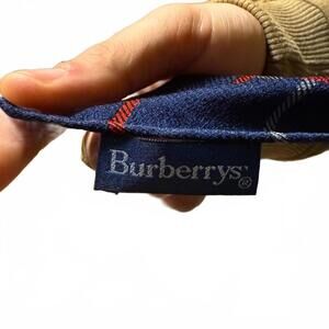 AUTHENTIC Burberrys Vintage Navy and Red Silk Scarf- Great Condition
