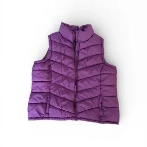 Stylish purple puffer vest. Perfect for layering.