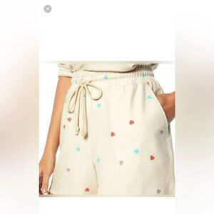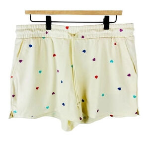 Wildfox White Shorts with Rainbow Hearts- Drawstring Waist High Rise 11.5" Size Large- Waist: 16" Inseam: 4"