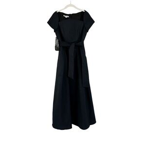 Kay Unger Francesca Asymmetrical Tea Length Dress Admiral Blue Black Size 8 NWT