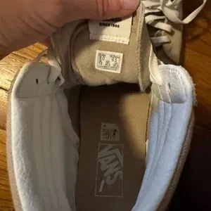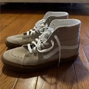 Classic Vans high-tops with white and tan design. Ideal for everyday style.
