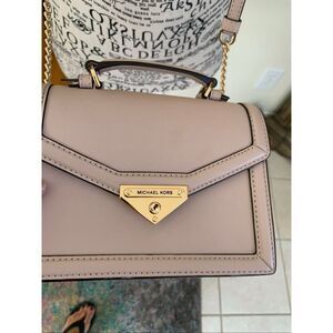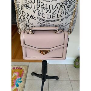 Michael Kors coveted Grace handbag is reimagined in Saffiano leather with chain-link details for striking contrast. The envelope-inspired front flap features a snap fastening and opens to reveal ample space for a day’s worth of essentials. Carry this sleek accessory by the top handle as a satchel or sling the shoulder strap on for crossbody-chic. Great condition.