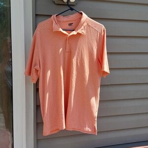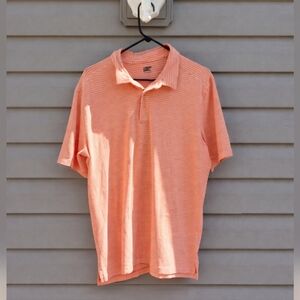 Lands' End Men's Striped Short Sleeve Polo Shirt - Orange/White Large