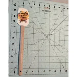 Seasonal spatula with a festive "Happy Fall Y'all" design. Useful for mixing and spreading, adding a touch of autumn to kitchen tasks.