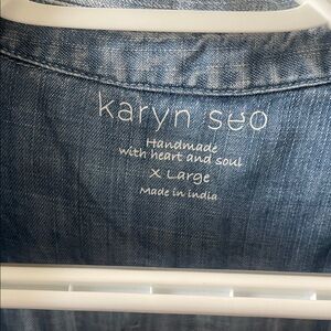 Karyn Seo denim button down shirt with intricate floral embroidery. Perfect for casual outings. Has not been worn.