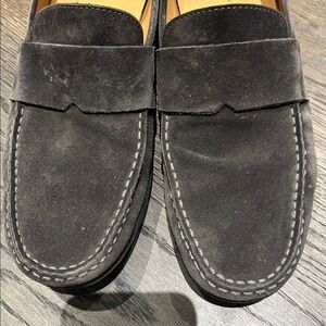 Gray suede Vince loafers.