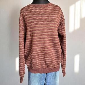 Vintage Lenor Romano 100% extrafine merino wool sweater. made in Uruguay. micro-stripe knit in earthy rust, brown, and olive. Classic crew neck, drop shoulders, and ribbed trim. retro ‘90s feel. perfect for fall layering, cottagecore or academia aesthetic.