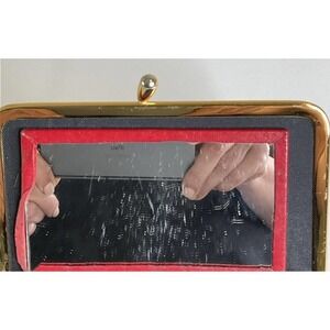 RARE Vintage Dior Red Leather Kiss Lock Mirrored Lipstick Makeup Wallet Case