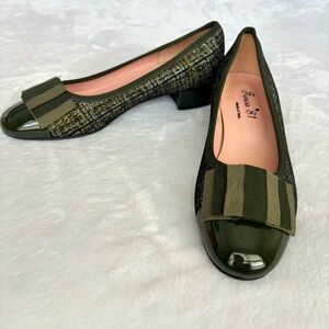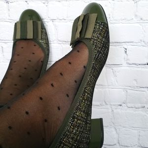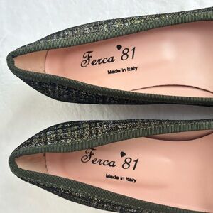 FERCA 81 Italian Genuine Leather Cap Toe Low Heel Green Tweed Pump--NEW--7.5