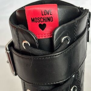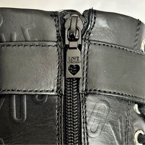 LOVE MOSCHINO Black Leather Moto Biker Boots--NEW--7