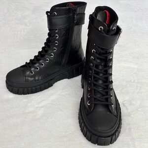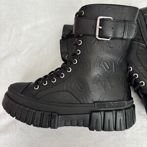 Hit the pavement in these cool Love Moschino ankle/mid-calf combat boots.