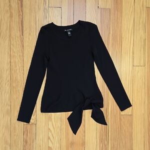 INC International Concepts Black Long Sleeve Tie Hem Blouse Top Size Size M