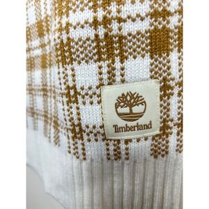 Timberland Plaid Knit Scarf White Brown Cozy Winter LOGO Streetwear Outdoor