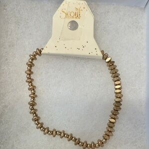 Elegant bracelet set featuring gold and silver beads. Perfect for adding a touch of sophistication to any outfit. 3 gold bracelets and 1 silver are included in the set. These bracelets are stretch bracelets.All new with tags! Check out my 5 star love notes!
