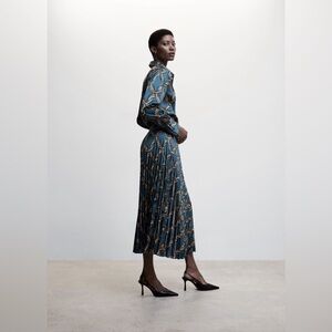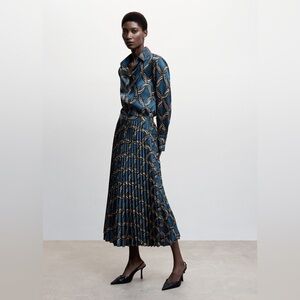Mango chain link print pleated midi skirt