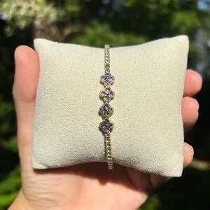 18K Gold Plated Stainless Steel Lilac Purple Diamond Flower Bracelet