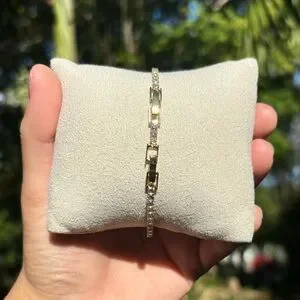 Item is Stainless steel Triple dipped in 18k Gold plated and Diamonds are cubic zirconia.