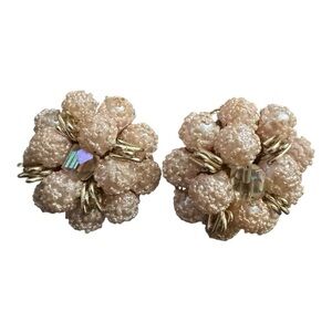 Vintage Japan Pink Textured Bead Earrings